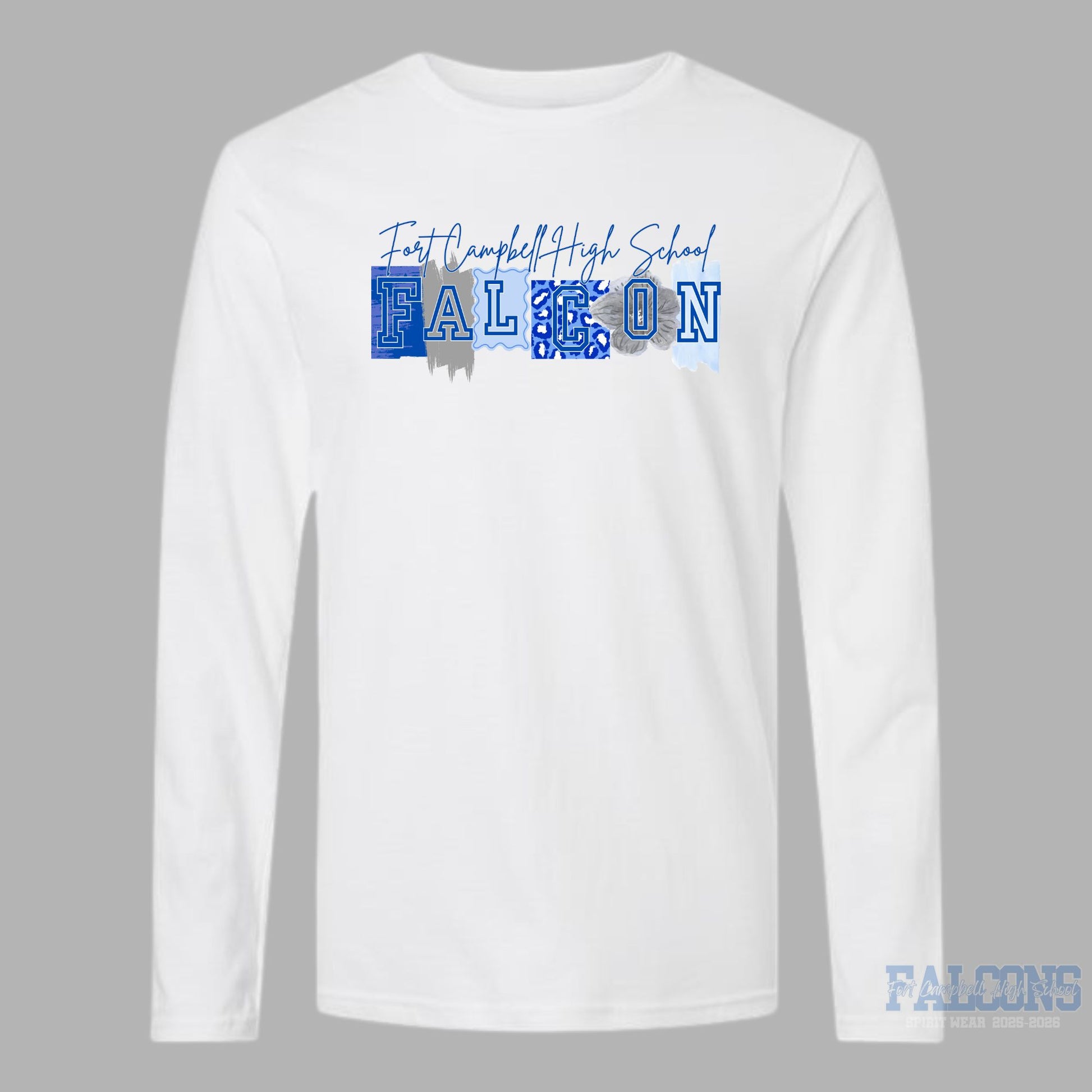 FCHS Falcons leopard blue ink Long Sleeve